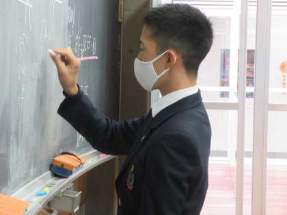 『相似な図形』の学習で、本日は主に『平行線と比』を取り上げています。これまでに学習した「三角形と比の定理」も用いて、補助線の引き方に留意しながら様々な問題を解いていました。