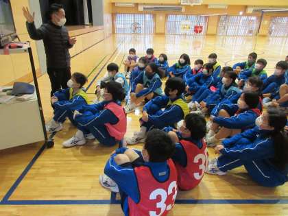 体育館で『バレーボール』に取り組んでいました。相手コートから返されたボールをキャッチしてよいルールなので、かなり高度なチームプレーもできるようになっています。本日は、オープン攻撃に挑戦していました。