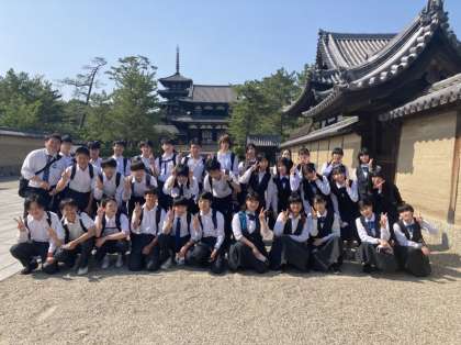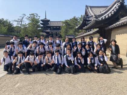 東大寺と同じように、まずはクラス集合写真を撮ってから、そのままクラスごとにガイドさんの案内で見学します。