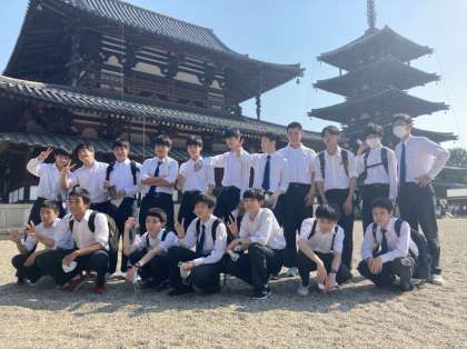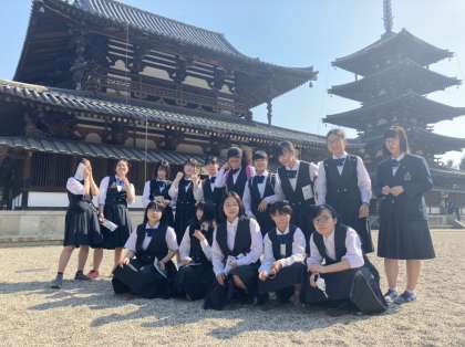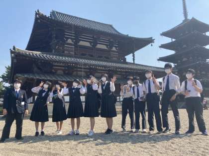 引き続き、法隆寺見学の様子です。写真撮影時にマスクを外した際は、発話禁止を徹底しています。