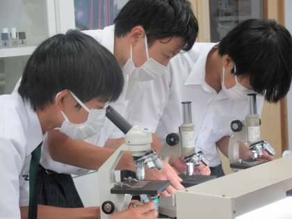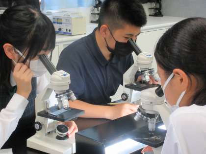 新しい大きな章『生物と細胞』に入りました。まず取り上げているのは『水中の小さな生物』です。本日は、実際に水槽や池にいる小さな生物を観察していました。試料(サンプル)は先生が用意してくださいました。