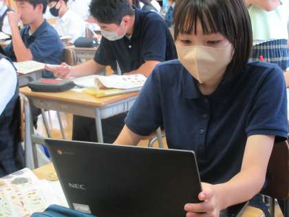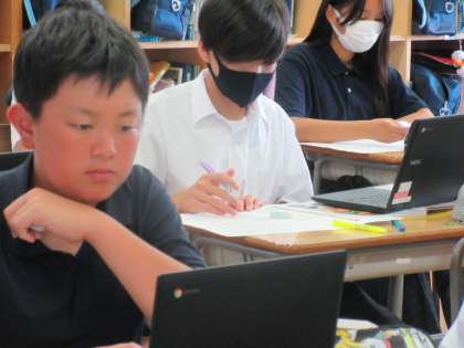 8年5組・技術家庭(家庭分野)の授業の様子です。