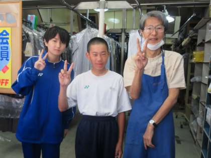 店長さん(写真・右)は、本校の卒業生でもありCS委員の方でもあります。そんなご縁でお世話になっています。最終日には、自分の標準服のクリーニングも体験させていただけるそうです。