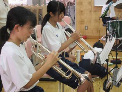 【写真・中】吹奏楽部の活動の様子です。