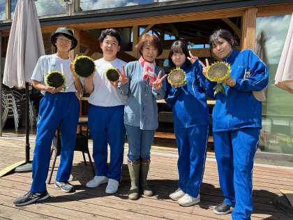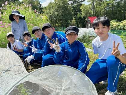 写真は上から、3組2班(ヒマワリの種取り)→3組5班・6班(ブロッコリーの苗植え・ヤギのお世話)→3組3班(小松菜の種まき・トマトジャム作り)の皆さんです。
