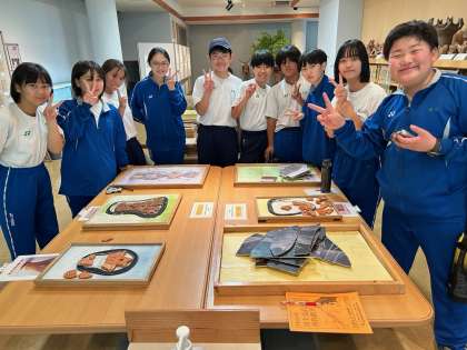 13時30分 尖石縄文考古館で、1組2班・3班(写真・上)3組4班(同・下)の皆さんに会えました。