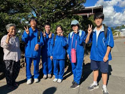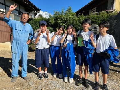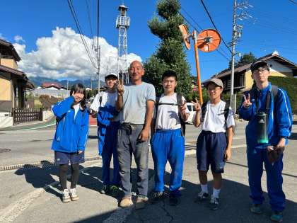 写真は上から、4組1班(ニンニクの皮剥きや仕分けなど)→4班(様々な野菜の植え付けや収穫、さらに廃墟巡り?)→3班(ホウレンソウの種まきや糸織り見学)の皆さんです。