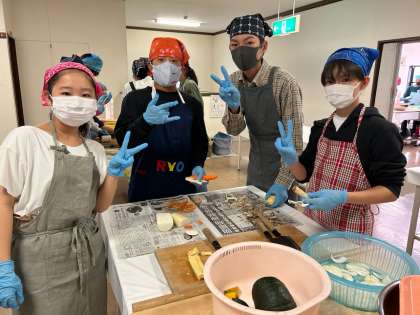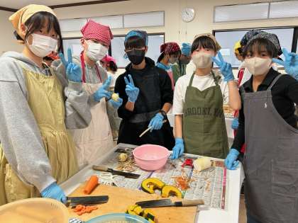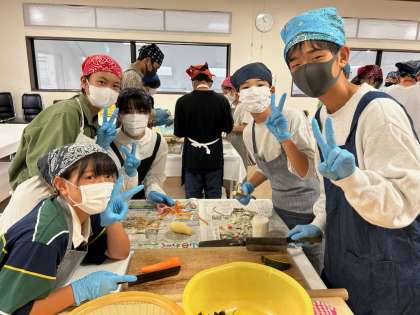 コロナ禍で、学校での調理実習が思うようにできなかった学年ですが、インストラクターさんの手ほどきで頑張っています。