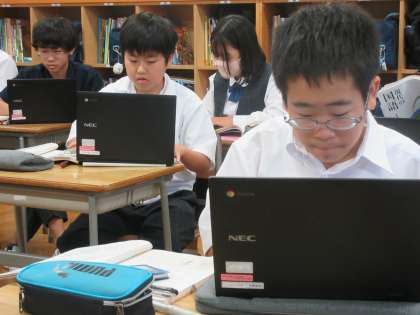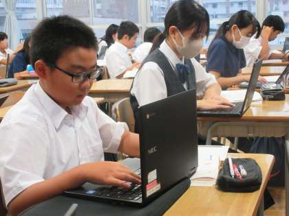 本日は、ほとんどの人がChromebookを使ってドキュメントで下書きを作成していました。400〜600字程度にまとめ、清書は原稿用紙に手書きで行います。完成した随筆は友達と読み合い、体験を共有するそうです。