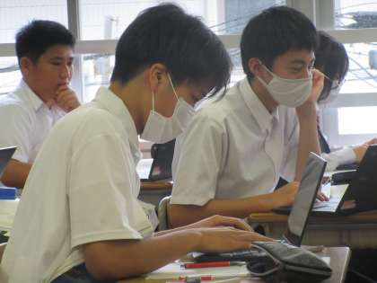 アブラゼミ、ミンミンゼミ、ニイニイゼミ…。Chromebookで検索して様々なセミの鳴き声を聞き、この句のイメージに合いそうなセミを考えました。一方で、立石寺の場所や樹木等の環境、芭蕉が訪れた日や時間帯などを調べてみると、ある程度特定できると思いますよ。