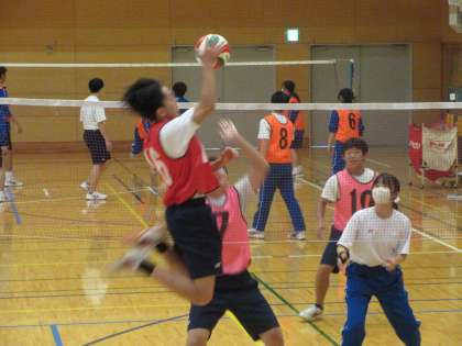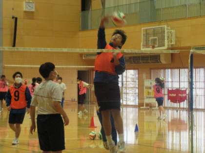 まさに初心者でもラリー(攻防)を楽しめるルールですが、9年生ともなると技術的・戦術的な面では通常のバレーボールに劣りません。本日は「クイック攻撃」の練習をしてから、それをゲームに活用していました。