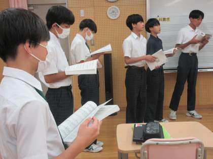 合唱発表会で歌う『 My Own Road −僕が創る明日−』のパート練習に取り組んでいます。この数日来、放課後に指揮者のオーディションを行うなど、文化祭に向けて少しずつ気運が盛り上がってきています。