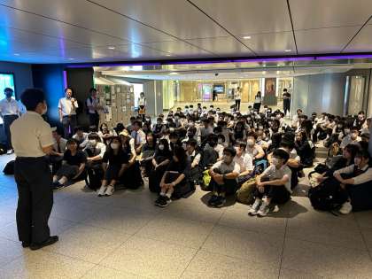 校長挨拶では、宿泊行事出発式恒例の「事故なし・怪我なし・違反なしで、東京で1番の修学旅行にしましょう」の一言だけ伝えました。では、この後はホームに移動し、8時51分発の新幹線で京都駅に向かいます。