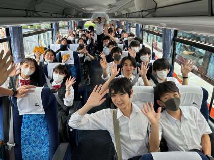 11時30分 クラスごとにバスに乗り換え、奈良の薬師寺へと向かっているところです。