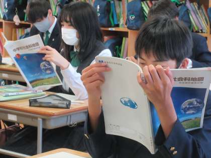 『日本の諸地域』の学習で「近畿地方」を取り上げています。本日は近畿地方の都市と環境問題を、特に「琵琶湖の水の利用と環境」に焦点を当てて考えました。言うまでもなく琵琶湖は、日本最大の湖です。