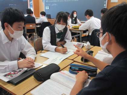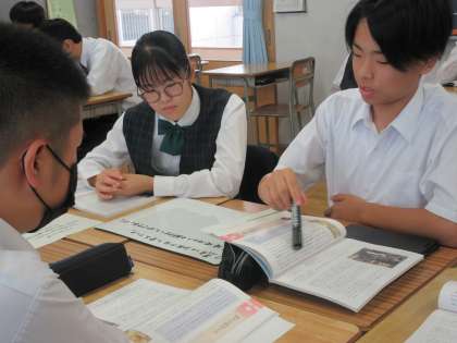 【真理の探究・創造】をテーマに、教科書の『戦争を取材する』という読み物を使用していました。2012年、内戦下のシリアで取材中に命を落とした戦場特派員・山本美香さんの生前の談話を取り上げた読み物です。その談話の中で山本さんは、次のように述べていました。