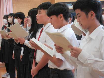 この時間は、自由曲『手紙〜拝啓 十五の君へ〜』の練習でした。曲の中で何回か繰り返される歌詞「 Keep on believing(信じ続けて)」のとおり自分と仲間を信じ続けて、残りの練習と本番に臨んでください。