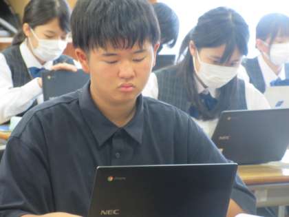 その手紙を読んで涙を流す主人公の気持ちを考え、もし自分が主人公だったらという想定でChromebookを使って弟子への返事を書きました。自分の弱さと向き合い、克服することの大切さを学んだ授業でした。