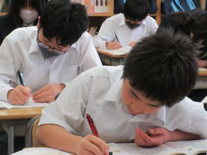 授業では、主に「安全運転に対する意識のもち方」について考えました。先日8年生が保健分野の授業で「自転車運転のルール・マナー」を学習していましたが、ぜひ学年を問わず保健の教科書も参照してください。
