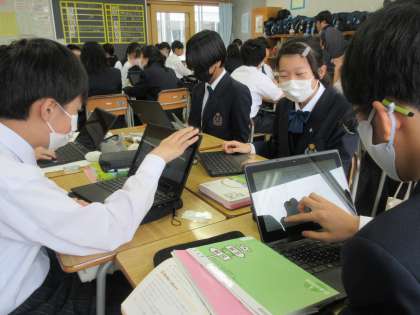 Chromebookには、学校の年間行事予定表が貼り付けられていました。それを参考に、自分やクラスに起きた出来事を振り返ります。そして、記事にしたいものをJamboard(電子版付箋紙)で書き出しました。