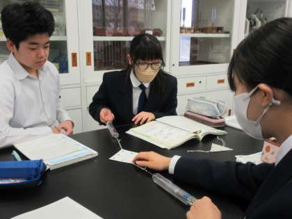 そうした実験を通して「力がつり合っている」という状態の意味や、1つの物体にはたらく2つの力のつり合いの条件を確認しました。蛇足ですが、厚紙は全て先生の手作りなので、丁寧に扱ってくださいね。