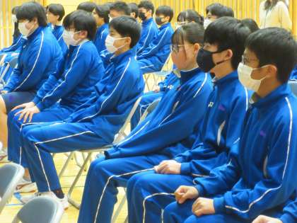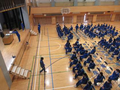 また、全員がジャージを着用しているのは、午後には球技大会が開かれるためです。本日はそれ以外にも、板橋区男女社会参画課より講師の方をお招きして「デートDV」に関する講義を受けました。