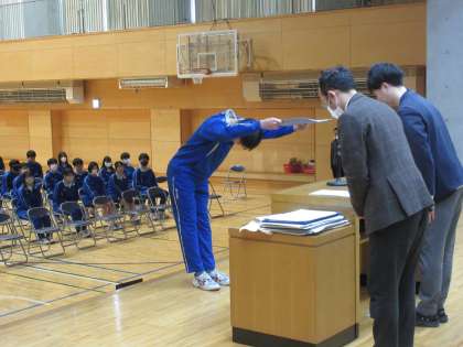 特別時間割の中では、基本的に教科の授業はありません。卒業式練習や学年行事が中心に組まれます。写真は、初めて行った卒業式練習の様子です。今までも説明は受けていますが、実際の動きを伴うのは初めてです。