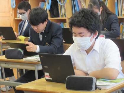 本校では全学年で、古典(和歌)の学習と日本の伝統文化に触れることを目的に『百人一首(かるた)』に取り組んでいます。本日は、その百人一首を少しでも多く覚えることをめあてとした授業でした。
