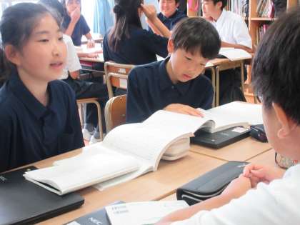 本日は、読者に想像の余地を残す結末部分を読んだ後「キキは幸せだったと思うか」を、その理由と共に考え友達と意見交換しました。周囲の評価を求めるキキのような承認欲求は、誰にでもあると思います。ただ、その程度によって「幸せか、不幸せか」が決まるのかもしれませんね。