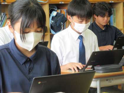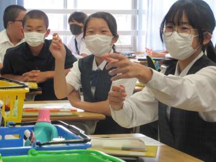 8年1組・技術家庭(家庭分野)の授業の様子です。