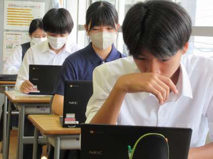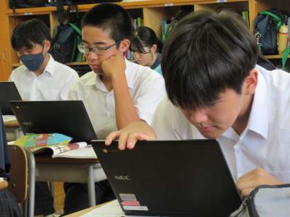 授業の冒頭、先生から「社会人のマナークイズ」が出されました。「社内で上司とすれ違った際の挨拶は『お疲れさまです』か?『ご苦労さまです』か?」といった選択肢問題や、電話をかける際の接遇マナー等の問題が出され「相手をもてなすうえで大事なこと」ことについて考えました。