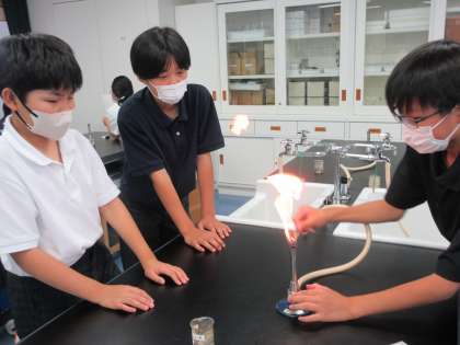 次回の授業で「白い粉末の区別」について実験を行います。本日は、その際に必要な基礎技能「ガスバーナーの使い方」の習得がめあてです。その実験に限らず、今後さまざまな実験で必要となる基礎技能の1つです。