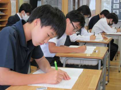 そのため授業のめあても【ペース配分・速さを意識して解くことができる】とありました。結果(点数)もさることながら、そうしためあてを達成できたかどうかも振り返ってください。この「模擬トレ」には、今回を皮切りに2学期にかけて全部で5回取り組むそうです。