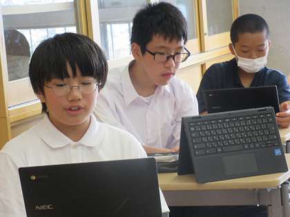 代理の先生も、お上手にピアノ伴奏をしてくださったこともあり、皆さん初めてとは思えないほど声が出てました。本日は歌詞をChromebookで確認しながらの練習でしたが、すぐに歌詞も覚えられそうですね。