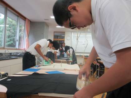 衣生活に関する実習『エプロン制作』に取り組んでいます。授業のめあては【アイロンがけやまち針の留め方が理解できる】とありました。前者はやけどや火災の防止、後者もけがの防止という視点からも重要です。