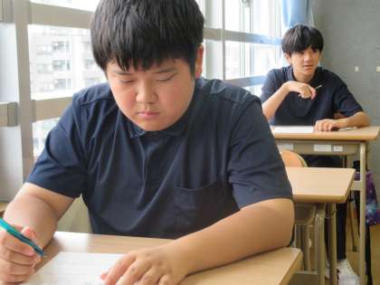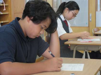 そのためこの授業でも、ひととおり学習を終えたUnit-3の振り返りと復習を行っていました。単元で学習した英単語の小テストや、文法的な内容も含んだリスニングテスト(聴き取り問題)に取り組んでいます。