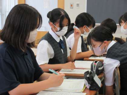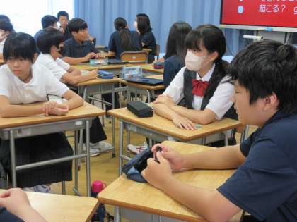 「向上心・個性の伸長」をテーマに、教科書より『新しい夏の始まり』という読み物を使用していました。いよいよ進路決定を意識する中学校最後の夏休みを前に、とてもタイムリーな授業となっていたようです。