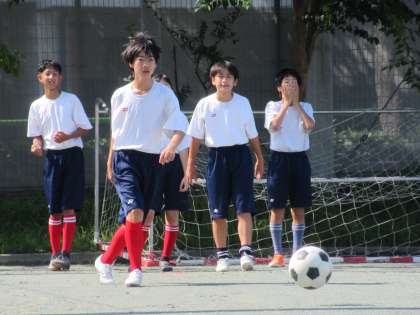上記サッカー部と校庭を半面ずつシェアしながらの活動です。部員の皆さんに「熱中症に気をつけましょう」と言いながら取材していると「校長先生も水分を取ってくださいね」と、逆に気遣ってくれました。