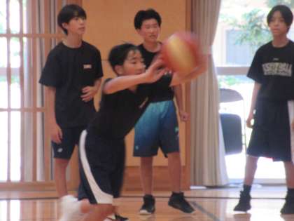 コート4隅から走り出し、ボールをダイレクトパスで回していく練習です。私は見ているだけで目が回りそうでしたが、部員の皆さんは100回連続してパスがつながるまで練習を繰り返していました。