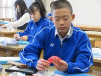 基礎打ちの練習です。基礎打ちといっても、クリア、ドロップ、スマッシュ等さまざまな打ち方を、ペアの人と交代でテンポよく打ち合います。9年生のいなくなった7・8年生もすっかり慣れたようです。