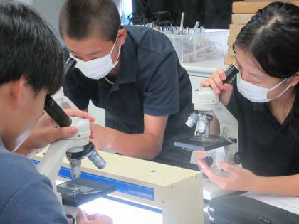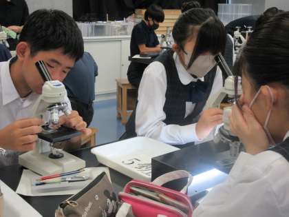 ミドリムシとミジンコを、顕微鏡を使って観察しスケッチします。生物は教材用の試料です。それを用いてプレパラートを作りました。顕微鏡の使い方は前回の授業で復習したので、スムーズに作業が進みました。