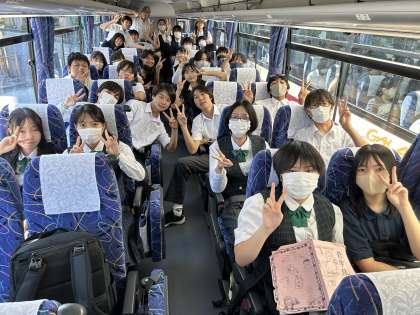 11時30分 クラスごとにバスに乗り換え、奈良公園(東大寺)へと向かっているところです。