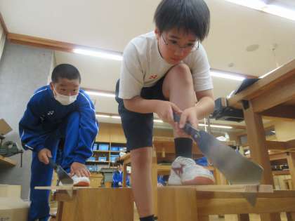本校では、誰1人生徒を取り残さないプロジェクト(DSTP)の取り組みを、全教科で研究・実践しています。例えば、7年生『木材加工』の実習では、ある一定期間ごとに席替えを行います。