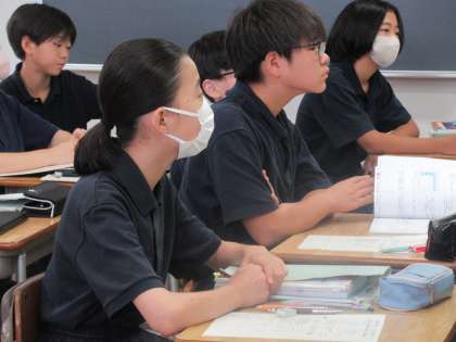 【写真・下】9年1組・国語の授業の様子です。