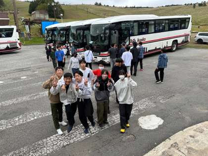 車山高原(スカイプラザ)につきました。ここではトイレ休憩のみですが、バスの外に一歩出ただけでひんやりした高原の空気を感じます。天気は曇りです。