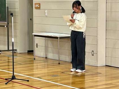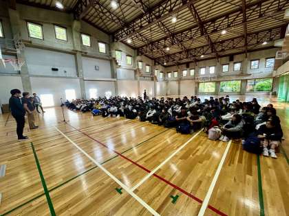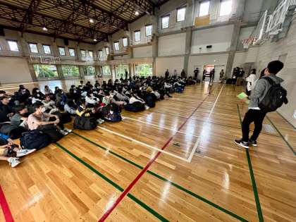 宿舎に着いて、すぐに体育館で行った開校式の様子です。