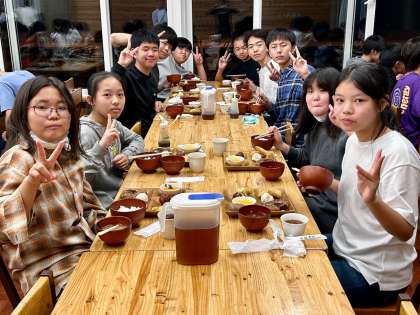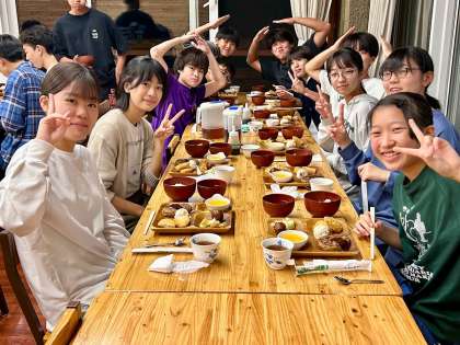 1日目夕食のメニューは、ハンバーグ、マッシュポテト、白身フライ、肉団子、ボイル野菜、ゼリー、ご飯、味噌汁です。