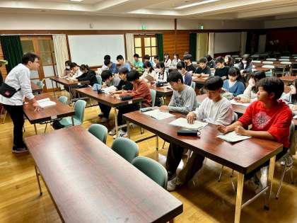 写真は上から、室長会→美化・保健係→レク係会議の様子です。宿舎に到着してから気づいた点を、反省を踏まえながら報告するとともに、それを踏まえた明日の日程や注意事項を確認していました。