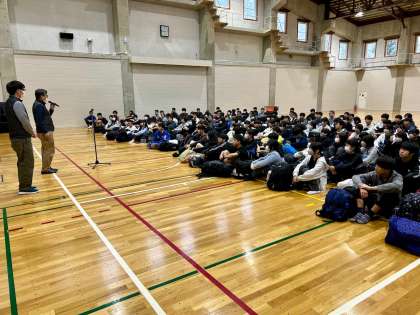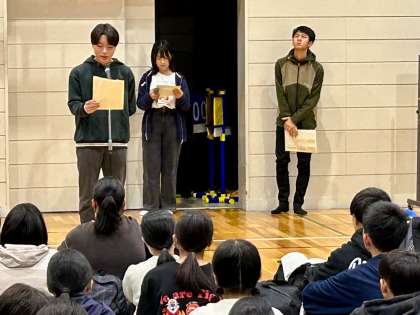 八ヶ岳荘の方よりお言葉をいただいただき、代表生徒の挨拶とお礼、学年主任の先生からの講評と続きました。