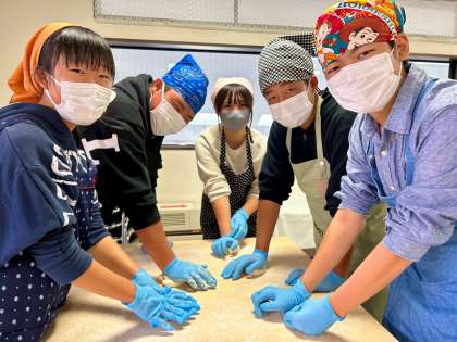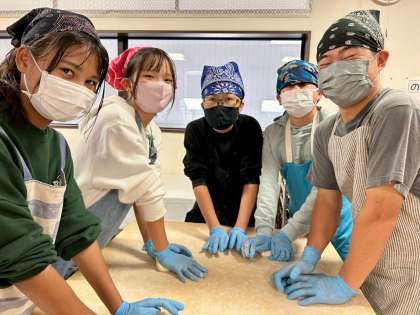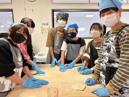もちろん、ほうとうの麺作りも自分たちで行います。うどん粉をこねたり、めん棒で伸ばしたり、包丁で特有の太さに切るのも自分たちです。